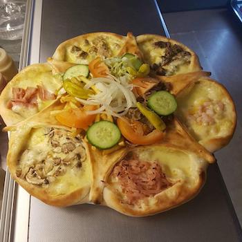 Skinka, räkor, champinjoner, musslor, oliver och kronärtskocka